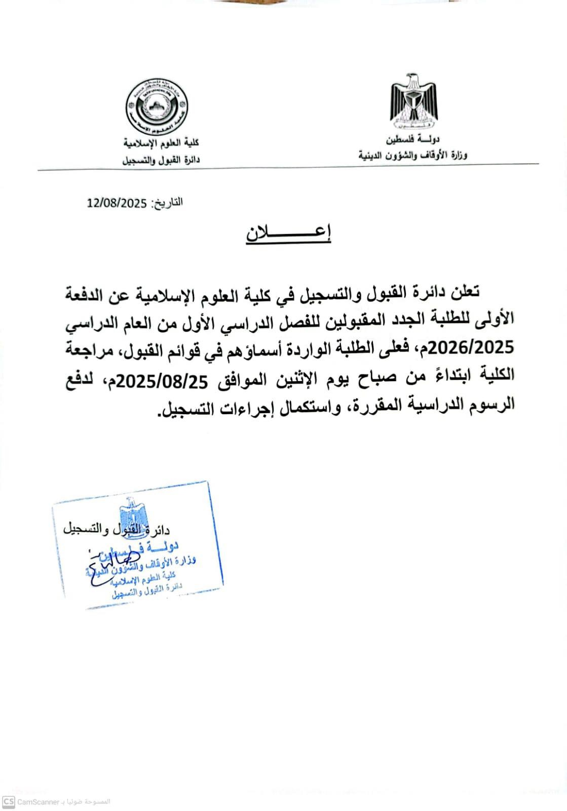#هام اعلان الطلبة المقبولين (الدفعة الأولى)