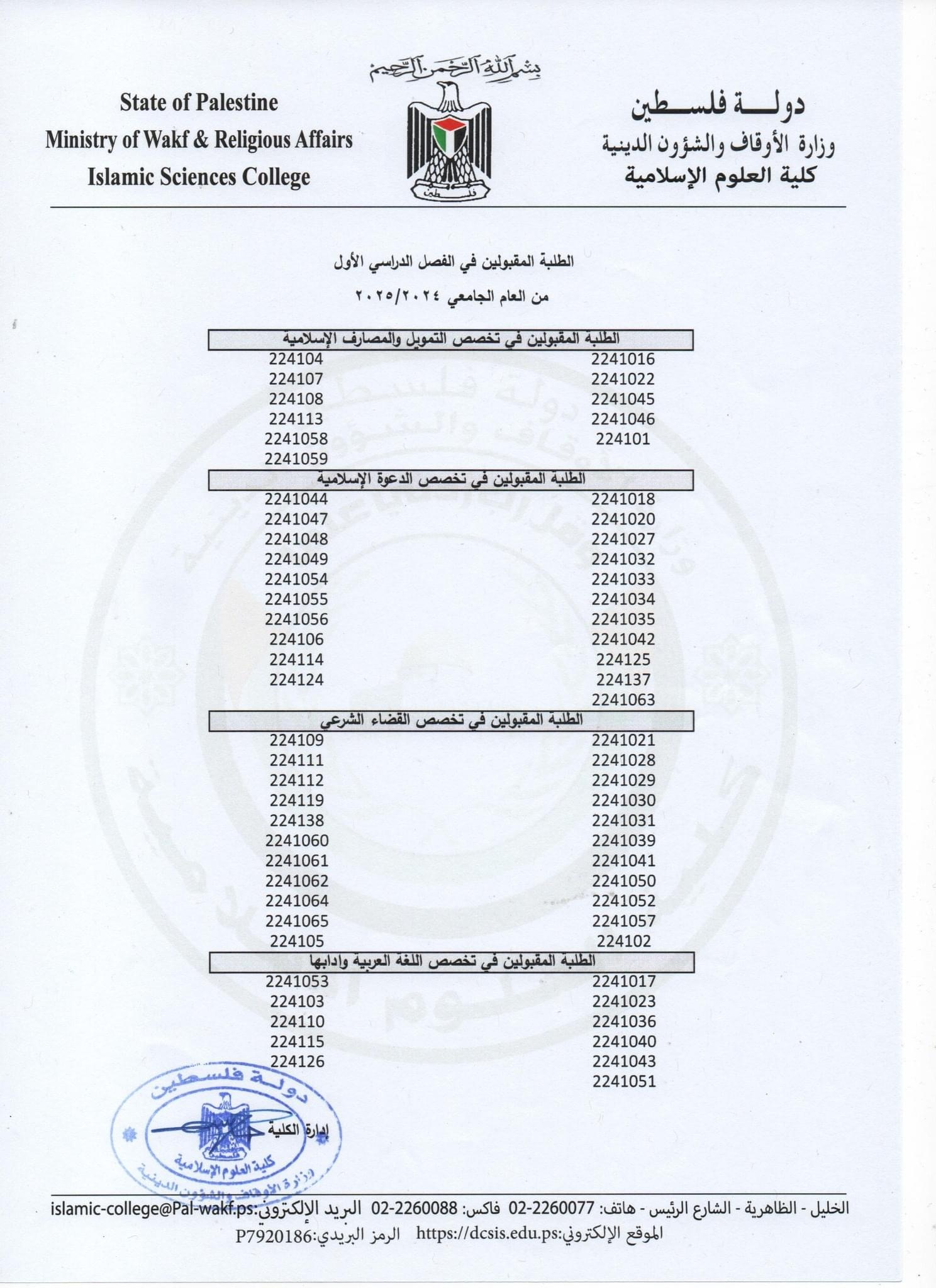 الدفعة الأولى للطلبة المقبولين في الكلية للفصل الأول من العام الدراسي2024-2025م. وفقكم الله تعالى لكل خير.