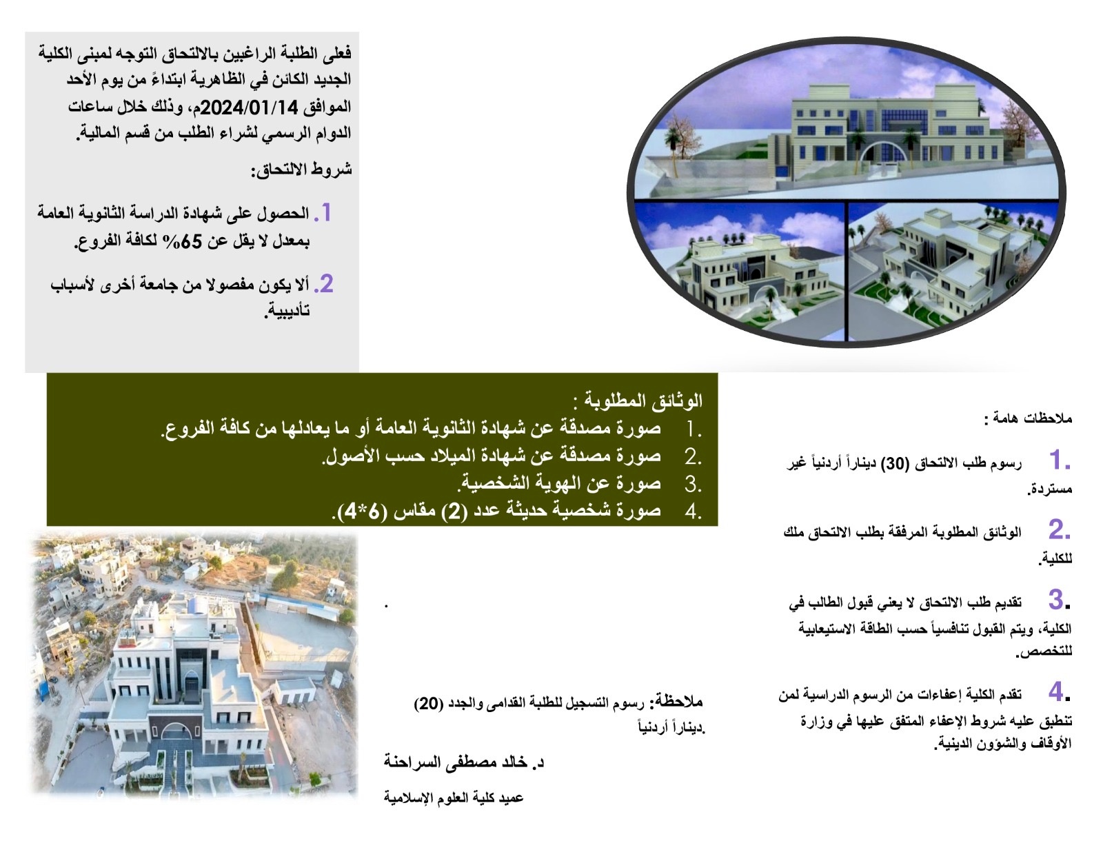 فتح باب تقديم طلبات الالتحاق للفصل الدراسي الثاني من العام الجامعي 2023/ 2024