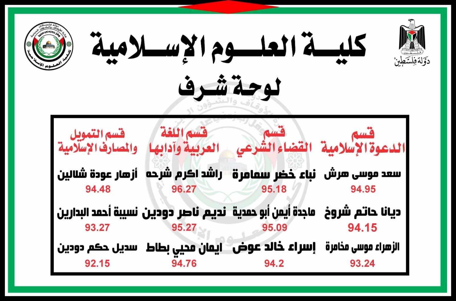 لوحة شرف كلية العلوم الإسلامية للفصل الثاني من العام الدراسي 2023-2024