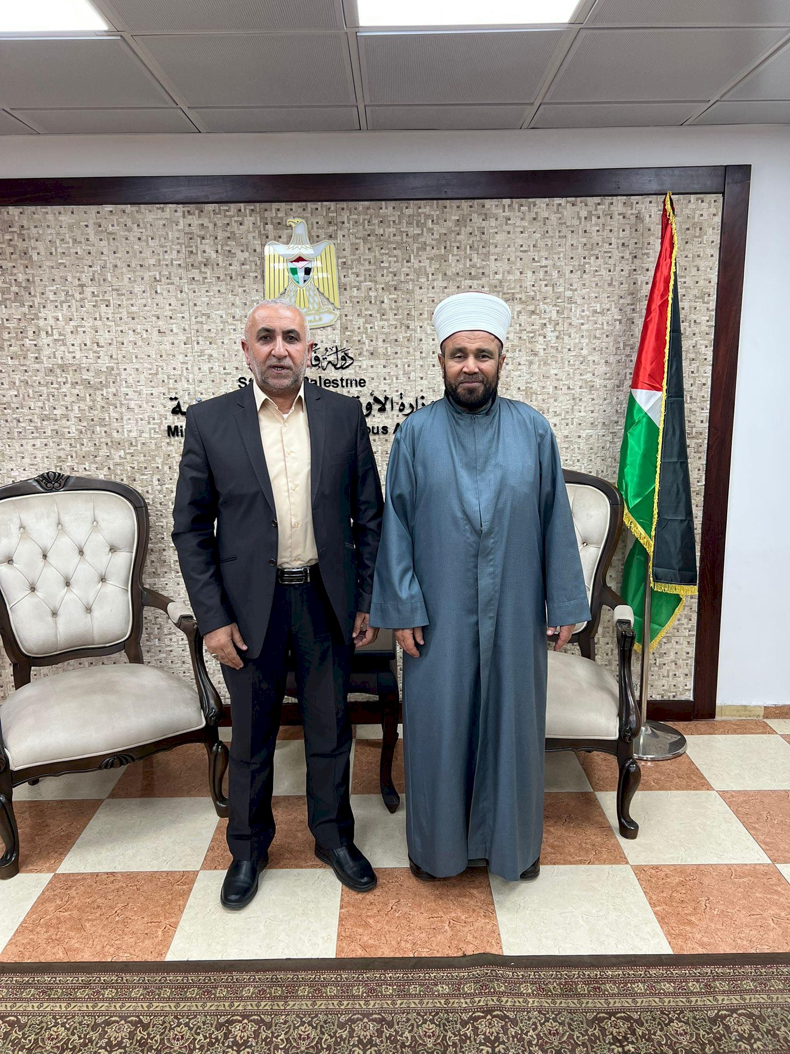 لقاء سماحة الشيخ الأستاذ الدكتور محمد مصطفى نجم وزير الأوقاف والشؤون الدينية بعميد الكلية الأستاذ الدكتور خالد مصطفى السراحنة،